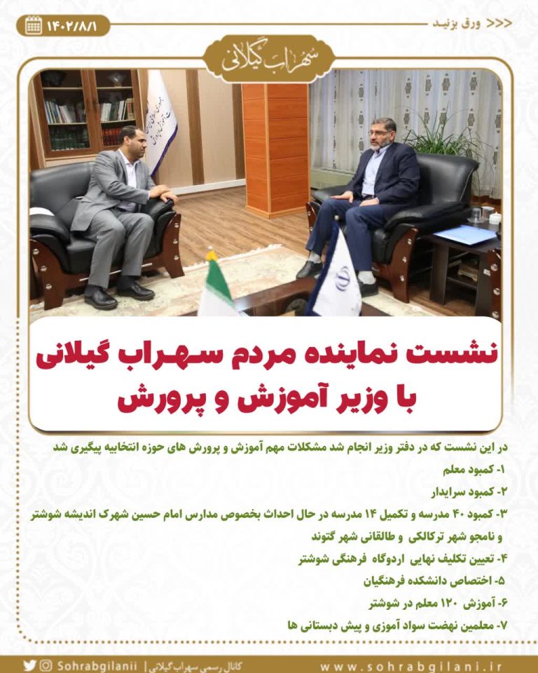 نشست نماینده مردم سـهـراب گیلانی با وزیر آموزش و پرورش